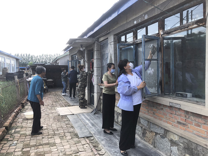 6月28日中午,桦甸市大勃吉林场党员干部利用休息时间,来到永吉街集厂新农村杨春林老人的家中,帮助老人打扫庭院、整理家务、擦玻璃。