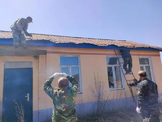 5月3日一大早,白林公司琵河林场组织员工用了一天时间,按照维修工序帮员工家属把房顶整修好,看到自家的屋顶一点点修补完整,焕然一新,员工家属打心眼里高兴。